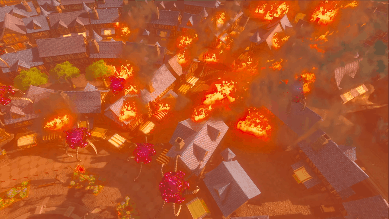 Il trailer ci mostra poi Calamity Ganon e il suo effetto su Hyrule, una carrellata di villaggi (anche in aree desertiche, cosa che potrebbe suggerire il ritorno delle Gerudo), e la piazza di Hyrule devastata.