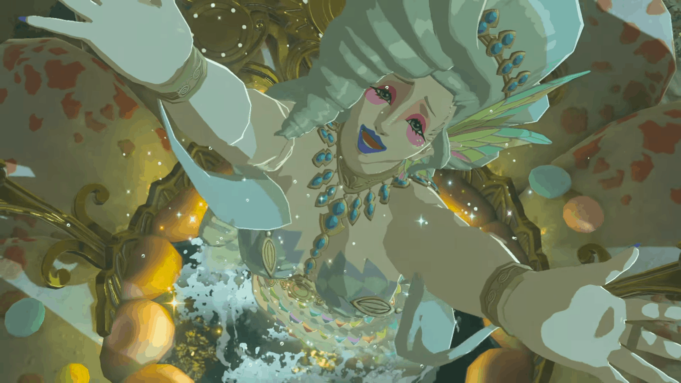 Si vedono quindi un Goron, quella che potrebbe essere una Fata (decisamente meno inquietante di quelle di Ocarina), il personaggio dai capelli rossi di prima (che, se fosse una Gerudo, avrebbe un colore degli occhi insolito: verde), e degli Zora rossi. Rivediamo anche l’uomo-falco del precedente trailer.