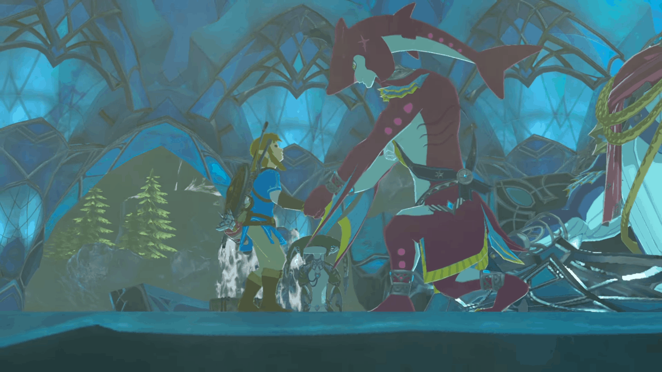 Viene mostrato poi Link di spalle in compagnia di altri tre personaggi: una ragazza dai capelli rossi, una figura non meglio identificata (forse un uomo-falco) e quello che sembrerebbe la creatura-tricheco di poco prima (che sia quindi un alleato?).