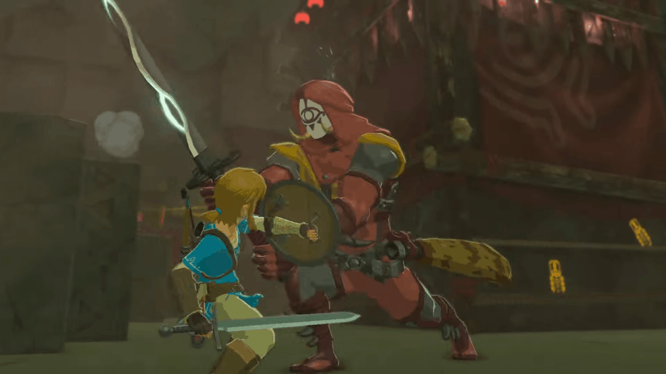 Viene poi mostrata una carrellata di nemici, da Bokoblin e Moblin corrotti da Calamity Ganon a Steppe Talus, da un nuovo mostro-serpente in un’area desertica (con un mostro più piccolo con il muso simile a quello di un tricheco che traina Link), a un Lizalfos, dal Moblin gigantesco mostrato a ottobre a… un nemico con una maschera Sheikah (e con una spada simile a quella di Oni Link/Link divinità selvaggia)!