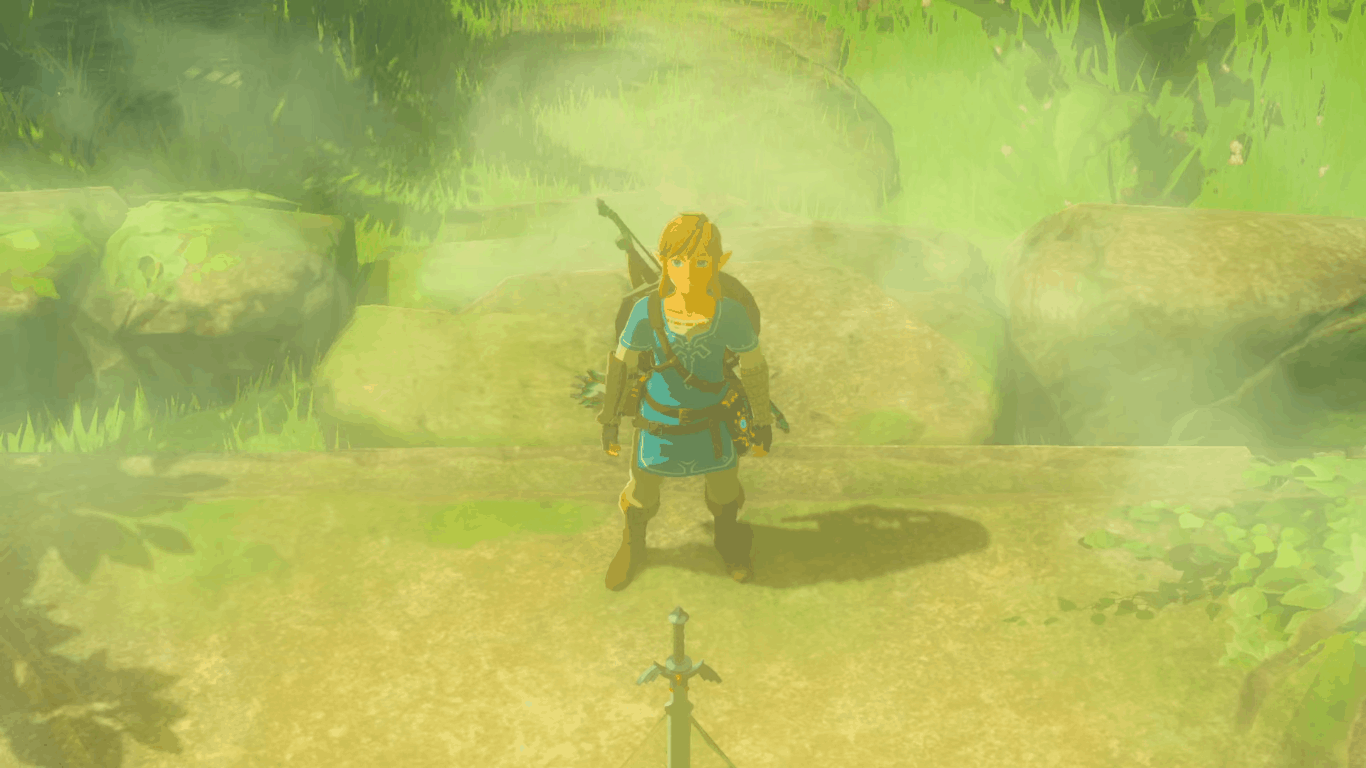 In una foresta s’intravedono dei Korogu e, procedendo nel dedalo di alberi, la Master Sword rovinata dalla furia degli elementi.