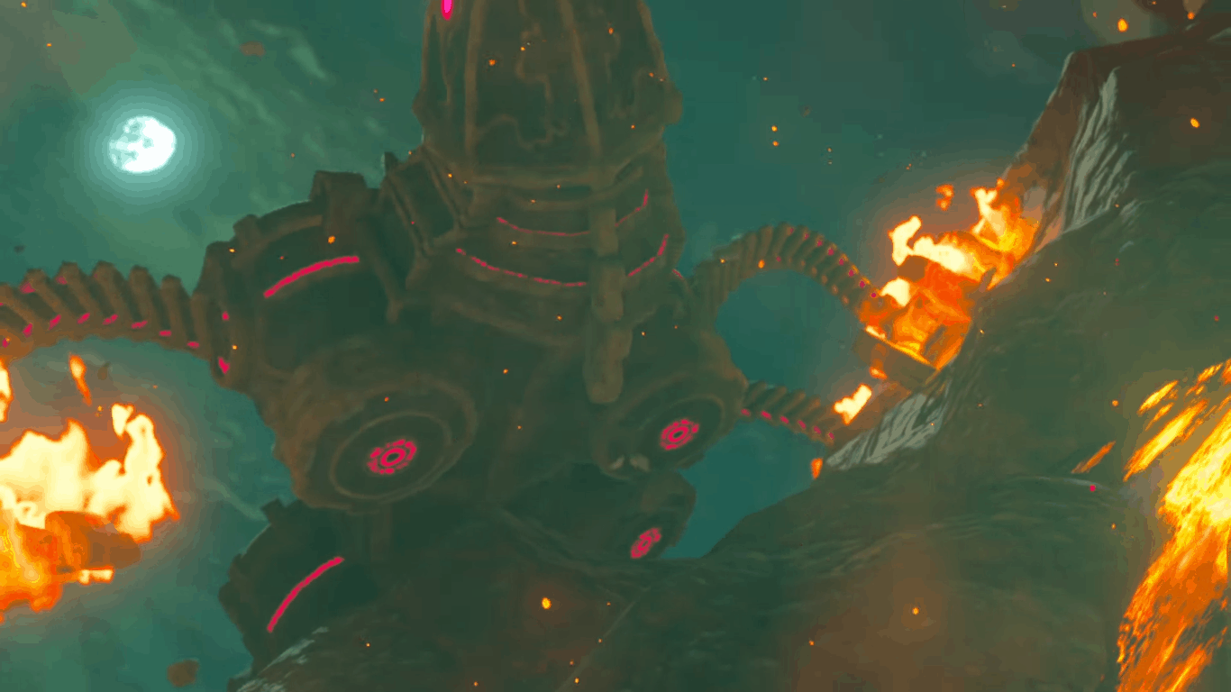 L’azione passa quindi a quello che sembrerebbe il passato, con diverse creature meccaniche gigantesche sotto il controllo di Calamity Ganon e… la principessa Zelda.