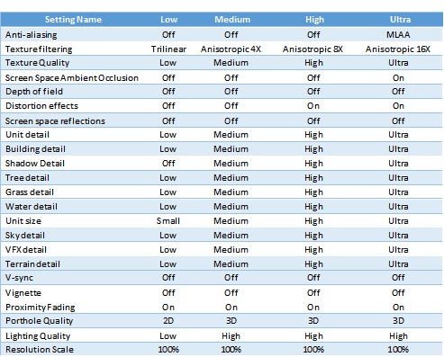 È stato pubblicato un grafico che spiega chiaramente a quali settaggi corrispondono i vari preset:
