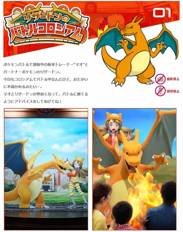 Ci saranno diverse attrazioni pensate appositamente per insegnare agli Allenatori vari aspetti del gioco, come il “Charizard’s Battle Colosseum” e il “Gardevoir’s Control Score”. Sarà inoltre possibile ottenere in premio dei Pokémon speciali per Pokémon X, Y, Rubino Omega e Zaffiro Alpha.