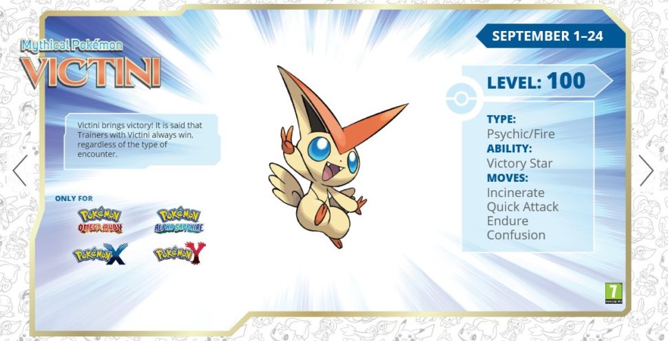 Pronti a catturarli tutti? A darci una mano ci pensa ancora una volta la distribuzione per il ventennale della serie Pokémon. Il regalo di questo mese è Victini, il leggendario apparso per la prima volta in Pokémon Bianco e Pokémon Nero.